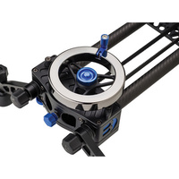 Center mounting the slider is made easy by attaching a camera plate or tripod to the included cheese plate underneath the rail, which features multiple threaded 3/8"-16 & ¼"- 20 holes. Each end block includes a 3/8"-16 female adapter that when removed becomes a 5/8" socket for mounting on C-stands and light stands. The included all-terrain legs have micro leveling capability and positive locking rosette connectors. Deluxe carrying case included.