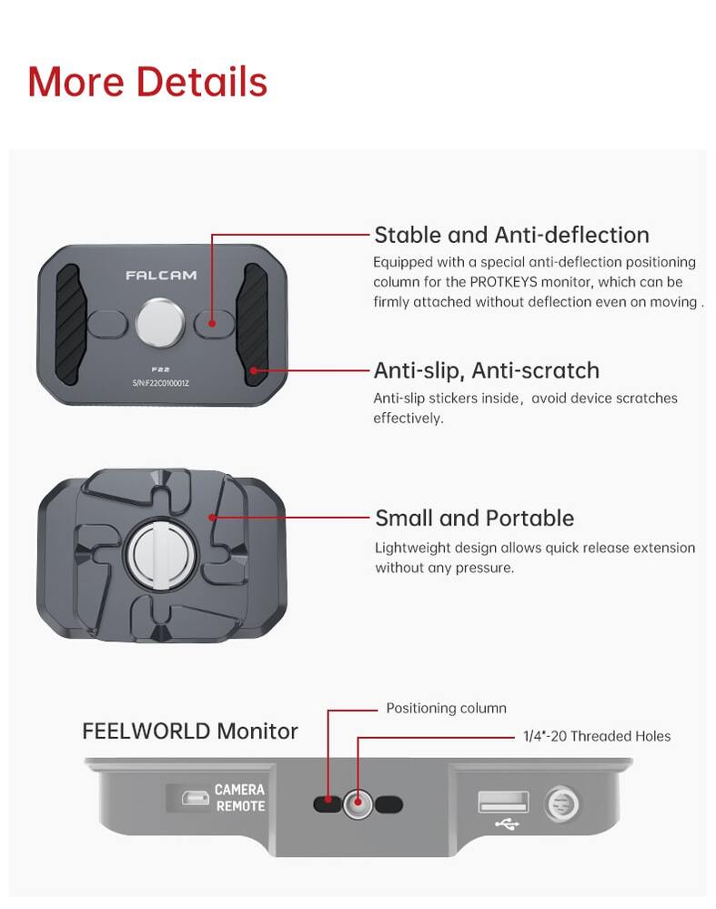 Specifically Designed for FeelWorld Monitor to Quick Rlease from or Install on F22 Camera Setup