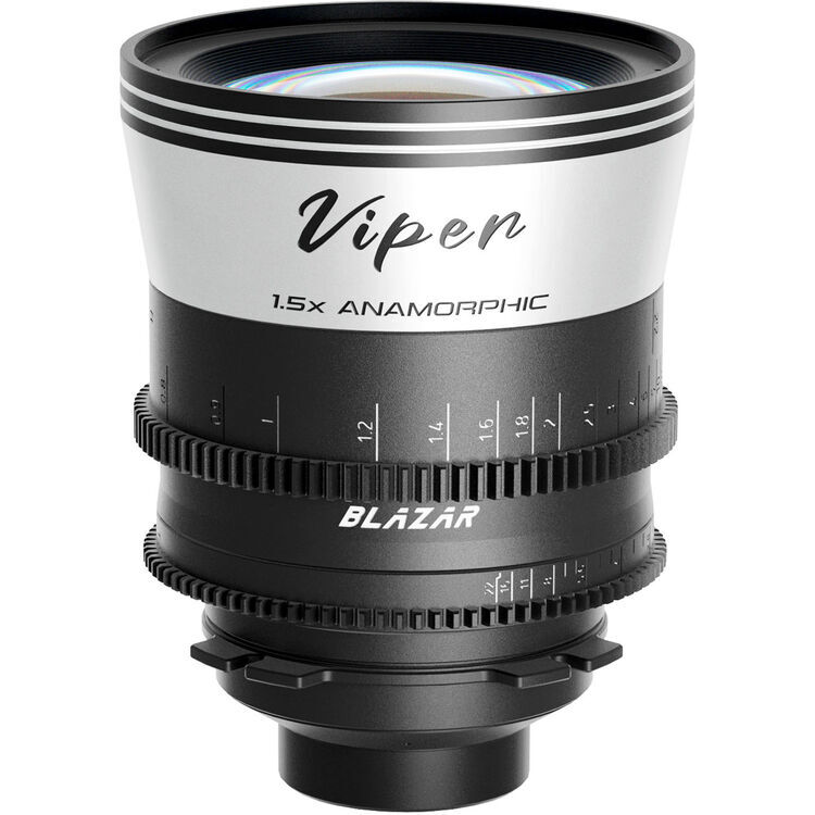 The ARRI PL-mount Viper 50mm T2.1 Full-Frame 1.5x Anamorphic Lens from BLAZAR LENS delivers a classic widescreen look with silver anamorphic flares and oval bokeh. Lightweight enough for gimbal and handheld use, this compact cine-style lens has an innovative design that produces a 1.8x look using a 1.5x anamorphic squeeze.